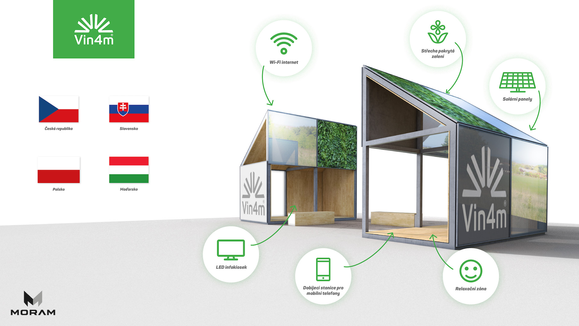 In city centres, we build intelligent gazebos for relaxation purposes. Besides offering an inviting space for taking a rest, their smart and interactive panels inform inhabitants about local news or news about technology and the environment etc., all this by using clean energy. Information panels are also able to notify locals about upcoming cultural events, show news from the official notice board or gives advice in crisis situations. Besides, we are active in the field of maintenance of cities and towns. Our gazebos demonstrate the practical use of protective, water repellent nano-coatings and the cleaning effect of smart plants (Franchet's cotoneaster) as well.