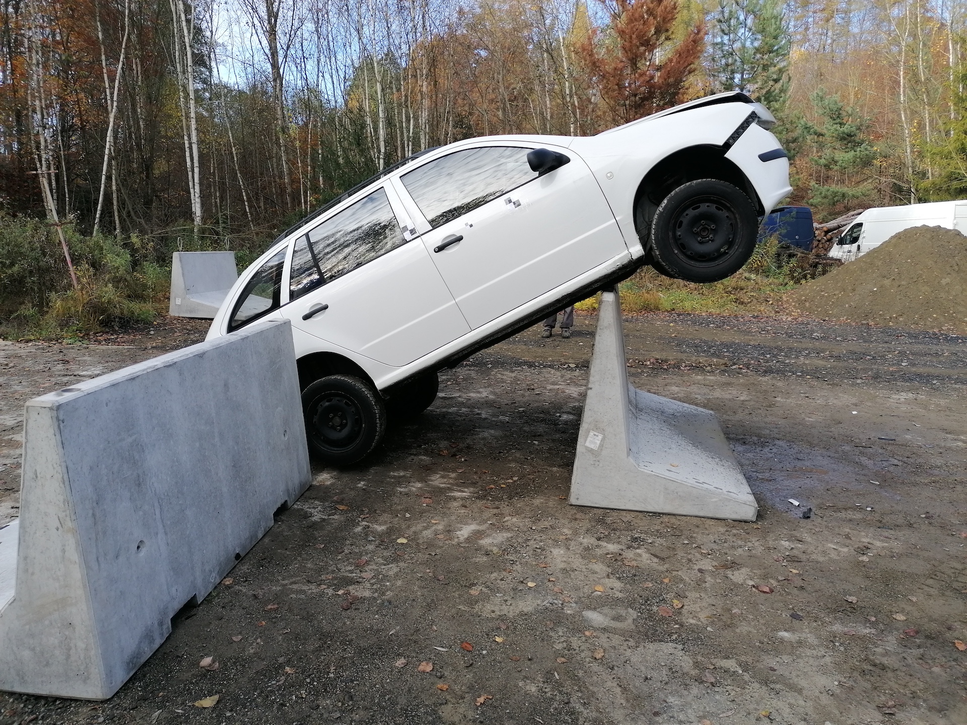 This safety barrier is made of L-shaped reinforced concrete. Flower racks or benches can be hung on it or a bicycle rack can be added, so the barrier simply fits into its urban environment. In case of a vehicle-ramming terrorist attack, the barrier rolls from one side to the other, leaving the vehicle hanging on the top of the barrier, unable to continue driving and endangering citizens.