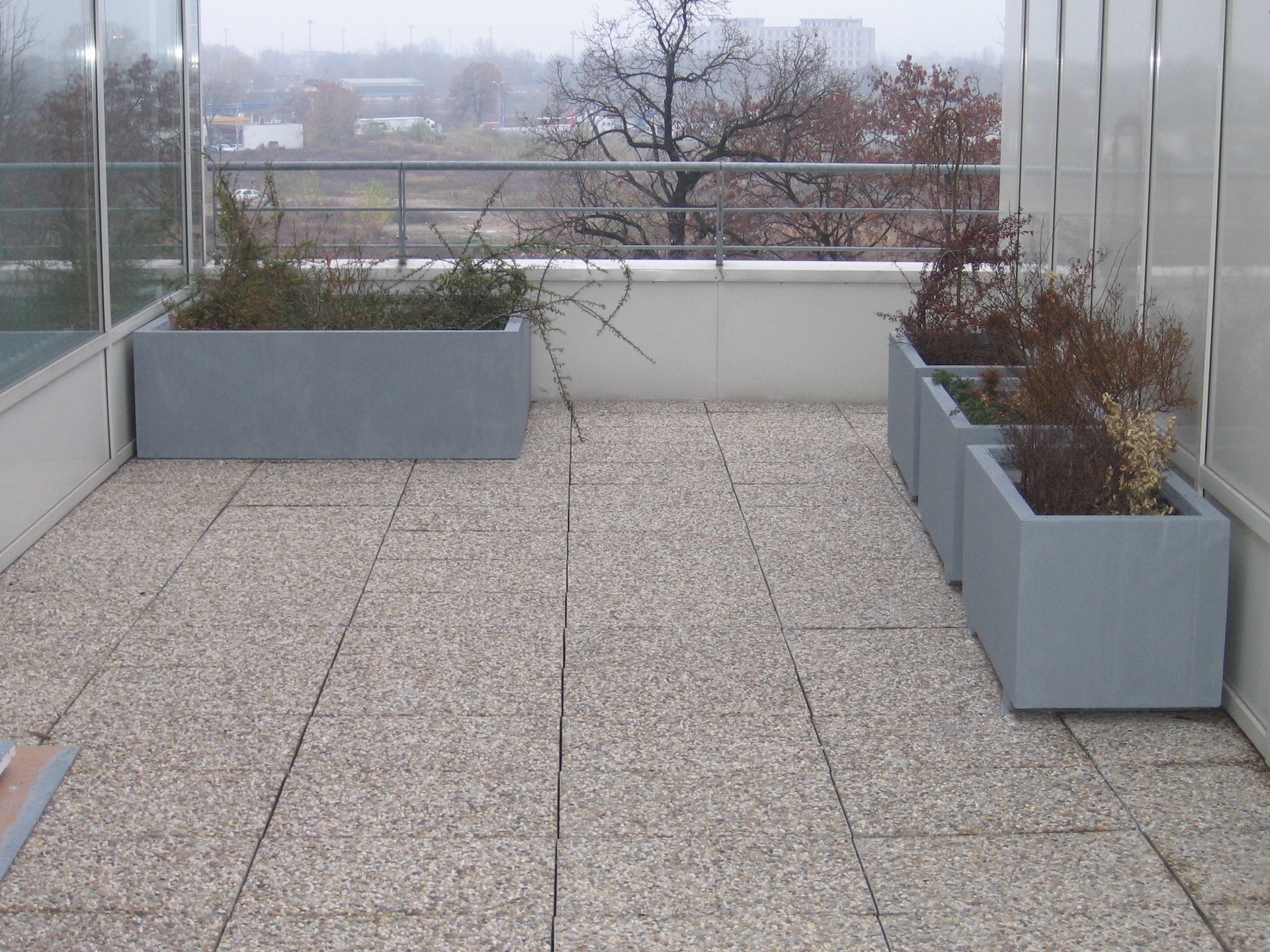 Large-volume planters of various sizes can be placed in parks, squares, or car parks, and can also be used on terraces of residential buildings etc. Planters can be made of grey or white cement, coloured, or coated, and their surface may be smooth or embossed. Thanks to their thin walls these elements are light, and as such, easy to move.